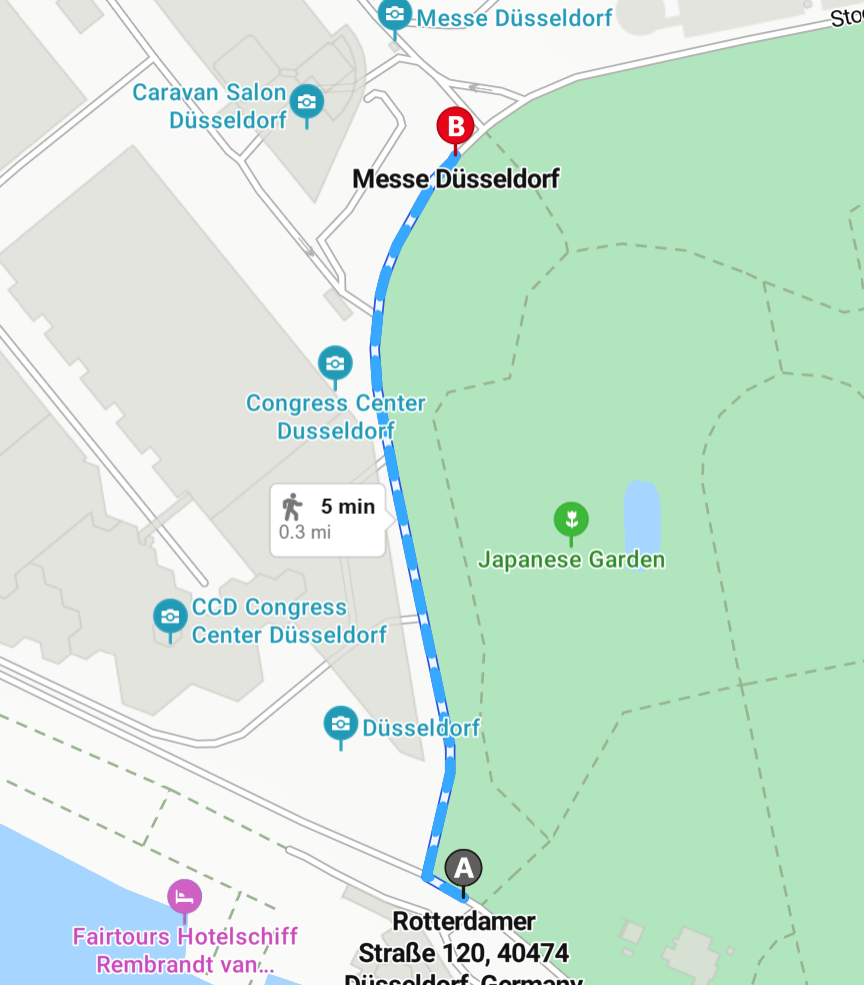 - Depart Messe Dusseldorf and walk along Stockumer Kirchstraße for 0.2 miles.